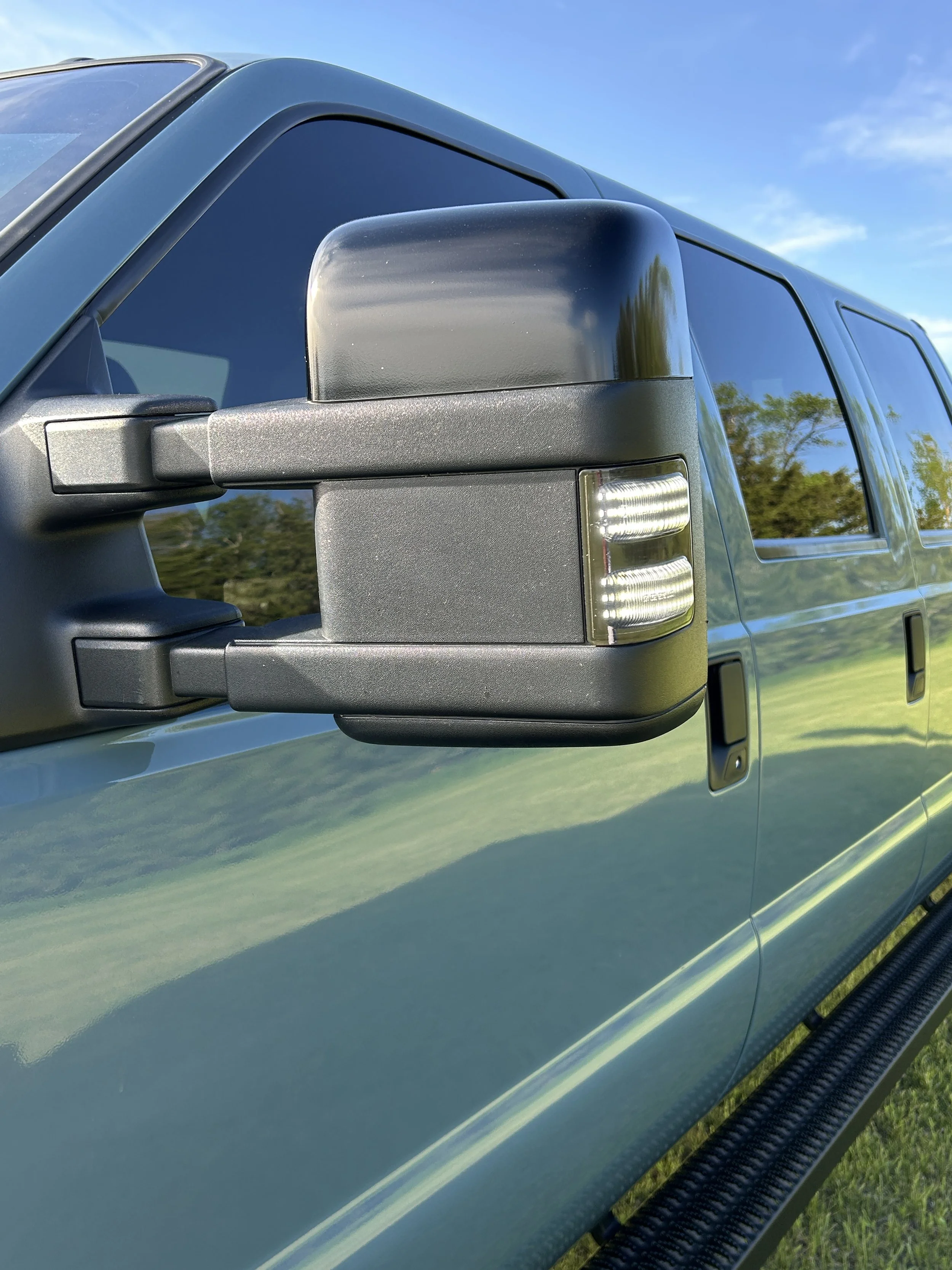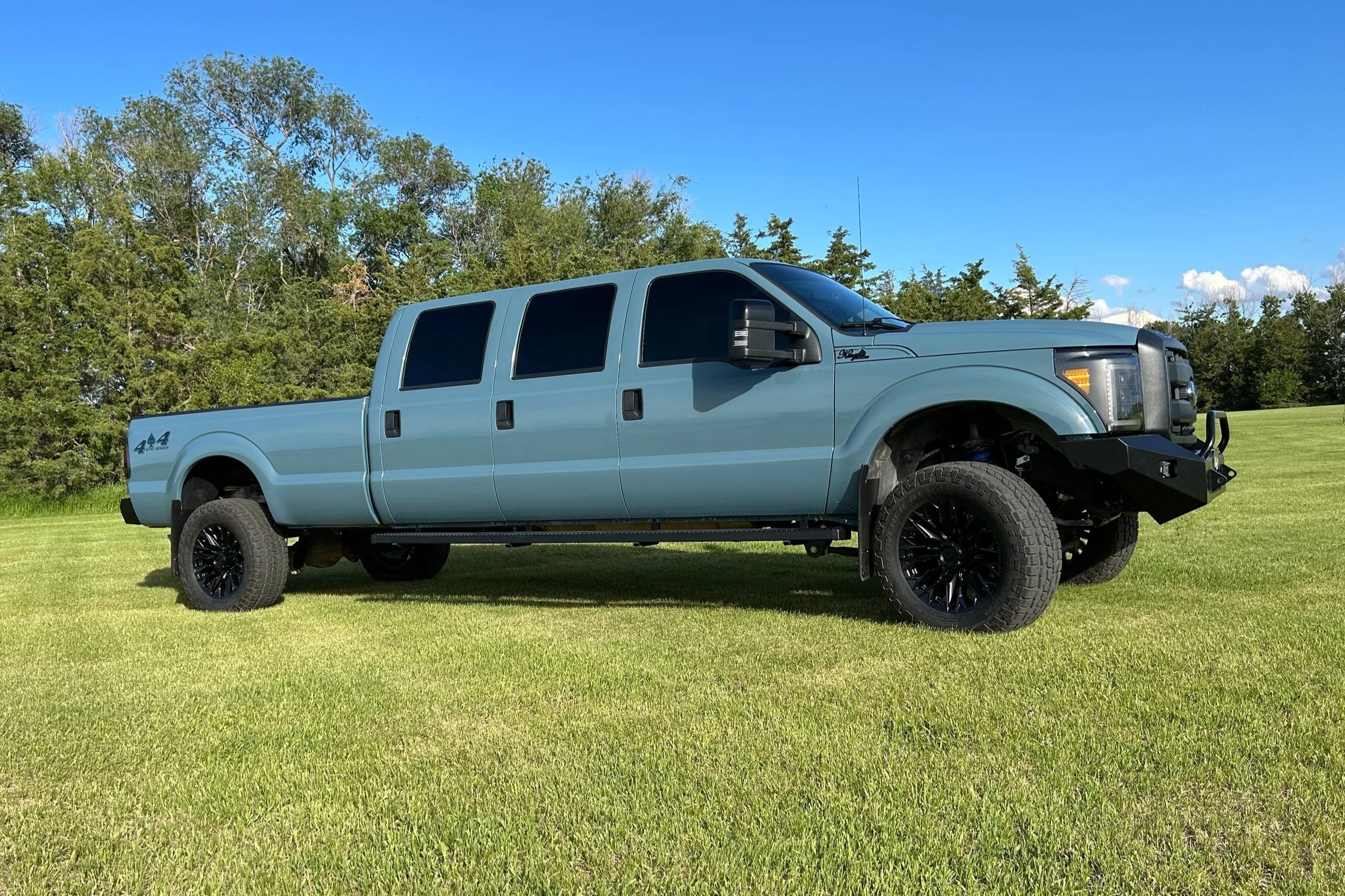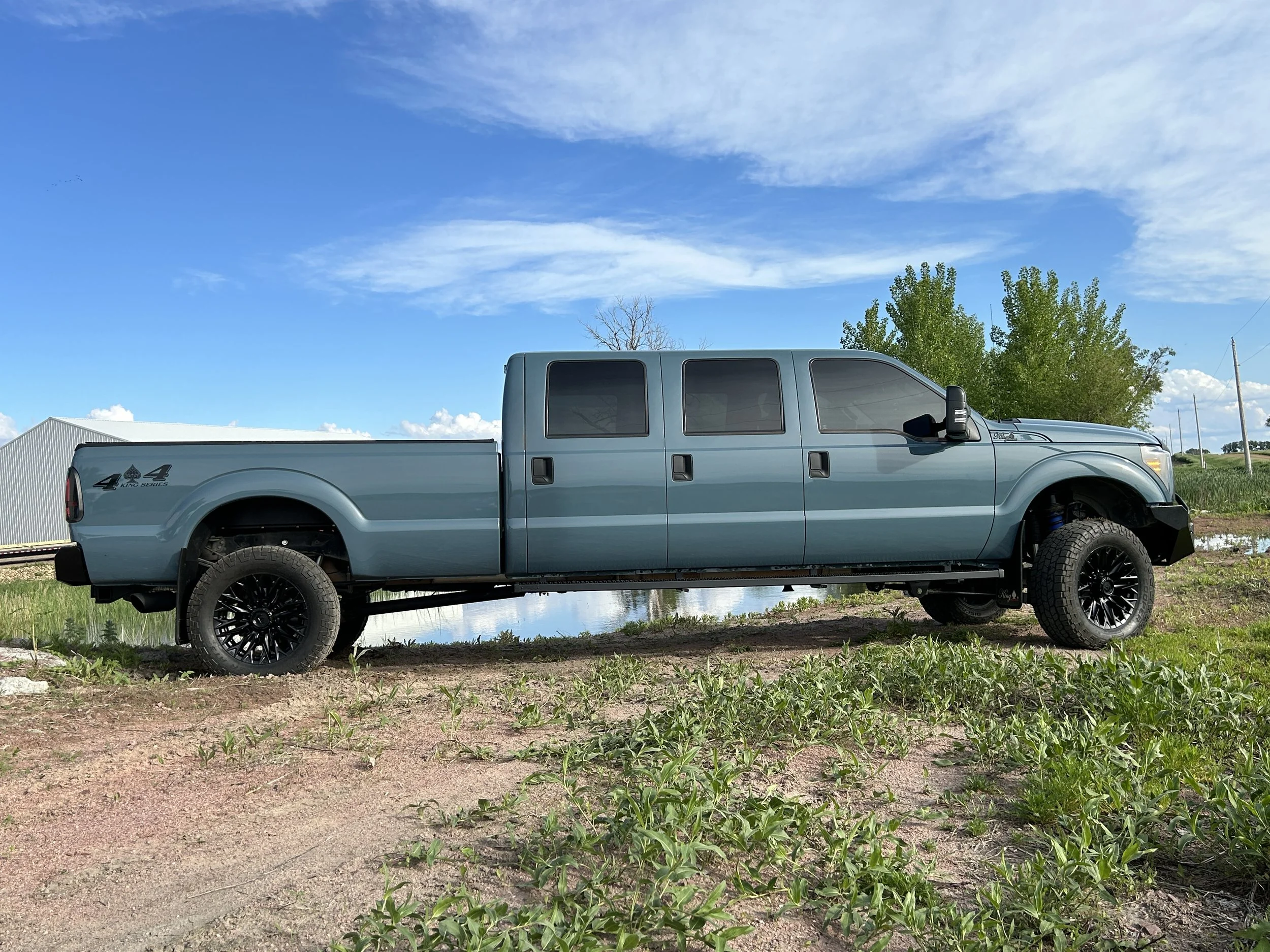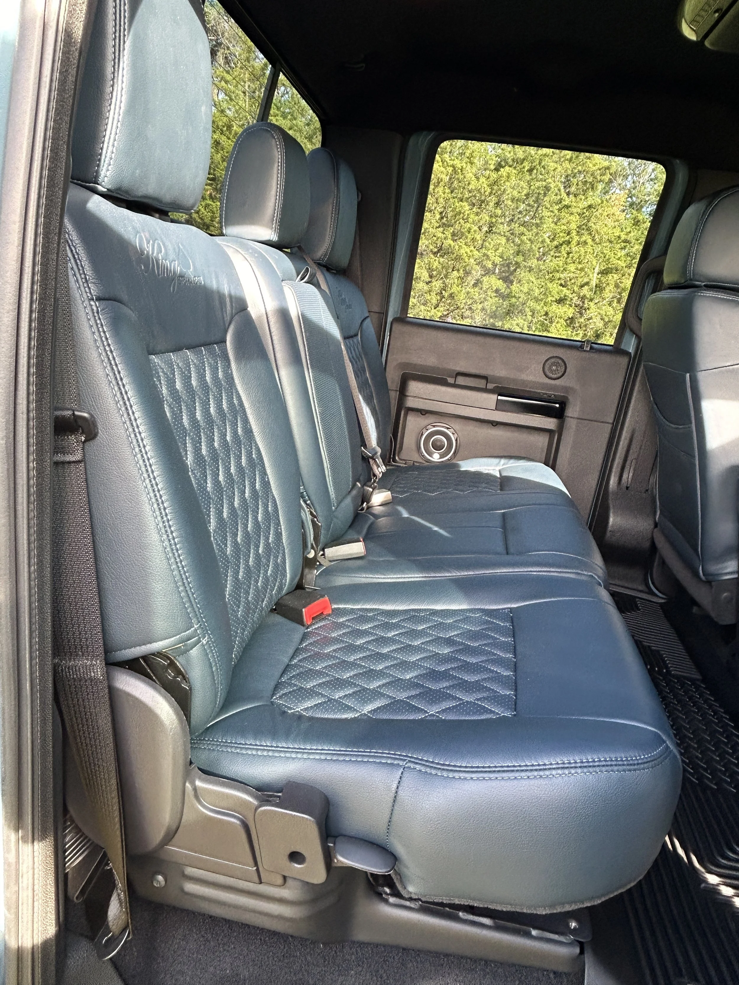 A color you’ve most definitely seen on the roads lately has finally made its way to our shop, Area 51 blue is here! This flat blue is accented so nicely with black handles, bumpers, wheels, smoked lights, and tires but these custom Katzkin leather upholstery seats in single-tone Atlantic with diamond stitch are in a league of their own! This one not only looks good, but sounds good with a new upgraded speaker system, and rides even better with rear Air Lift air ride suspension and Firestone Coil-Rite front air springs! The suspension sits perfect with the 3 1/2” ReadyLift and 35” tires. It’s hot in Texas so rear HVAC is a must while the kids watch their favorite movies on the added dual DVD players. Other upgrades include: TruXedo Sentry CT locking aluminum tonneau cover. Train Horn. Jimmi Jammers. Floor liners. Standard features include: LizardSkin spray-on Ceramic Insulation and Sound Control. Mil+Spec Liner in the box. Bilstein B8 shock absorbers. 2 Interstate Batteries. Dual port USB-C sockets. Seats 9. 4x4. 6.7L diesel. Warranty included. Top notch conversion with seamless fabrication! Learn more and see our other conversions at www.kingseriespickup.com. Contact us today at 605-550-9002 or at kingseriespickup@gmail.com to inquire! You can also contact us below on the link!