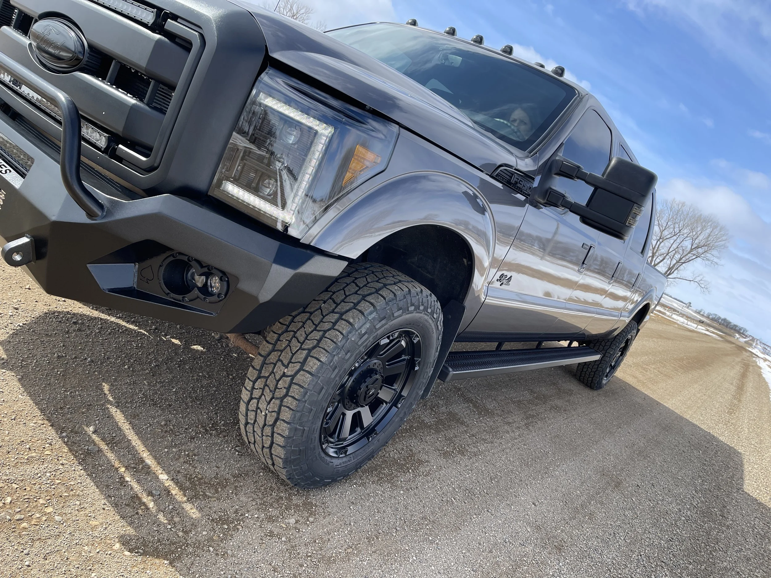 This build is COOL - in more ways than one! It is a 2015 F-350 Carbonized Gray SRW paired with a Black interior with custom Katzkin leather upholstery in Black with a Silver stitch. It also has Ceramic Window Tint, the most premium film on the market known for its high-heat rejection properties. Perfect to beat the Arizona heat, which is where this truck calls home. Ceramic Window Tint helps deflect the sun’s rays and keep the inside of the truck cooler, and the Integrated Automatic Temp Set Rear HVAC System helps keep a consistent temperature throughout the entire truck. Other effective, efficient, and family-friendly amenities include a 5 gallon air tank with waterproof 200 PSI heavy duty air compressor, Titan 60 gallon fuel tank, LED interior accent floor lighting, dual port USB sockets, and the popular favorite Kleinn Train Horn. Exterior accessories include Custom painted matte black emblems, Black grille, Dual 30" LED black series grille bar light kit, Morimoto LED Smoke Lens Headlights and Morimoto LED Smoke Mirror Lens along with Recon LED Smoke Lens Tail lights, Recon Smoke Lens LED Cargo light, and Recon Smoke Cab lights. Other options and upgrades include: LizardSkin spray-on Ceramic Insulation and Sound Control. Luverne Mud Flaps. Luverne Running Boards. Bilstein B8 shock absorbers. XD852 Gauntlet Satin Black wheels. Cooper Discoverer AT3 XLT tires. 2 Interstate Batteries. Husky Floorliners. Seats 9. 4x4. 6.7L diesel. Top notch conversion with seamless fabrication! Learn more and see our other conversions at www.kingseriespickup.com. Contact us today at 605-550-9002 or at kingseriespickup@gmail.com to inquire! You can also contact us below on the link!