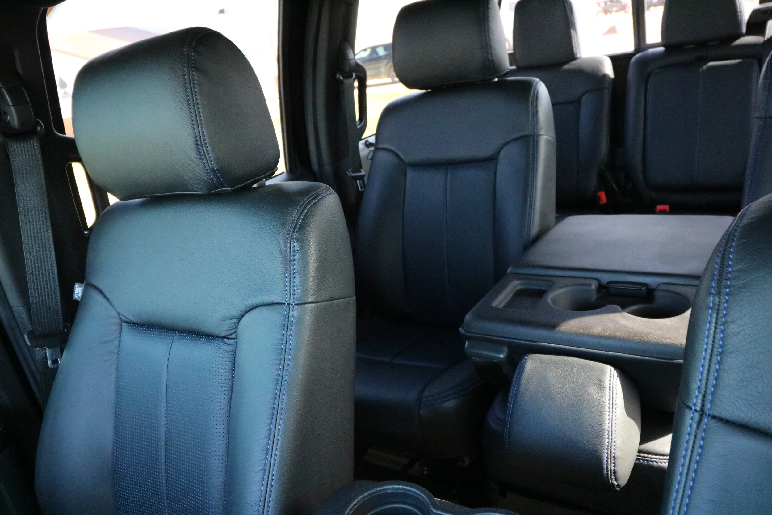 This King Series 6-Door Conversion has an Agate Black Metallic exterior and stunning Black interior with custom Katzkin leather upholstery showcasing 2-Tone Combo Barracuda Blue Perforated Duo-Tone Leather with Royal Blue Contrast Stitching. 6 3/4’ box. 4x4. 6.7L diesel. This truck is a show stopper! With the LizardSkin spray-on Ceramic Insulation and Sound Control, this truck provides a cooler and quieter ride. Other upgrades include: Bedliner. 5th wheel hitch. Camera Source 3rd Brake Light Camera. Set of 6 Door Striker for silent door closures. Dual port USB sockets throughout. Seats 8. Our customer is the owner of Auto Addictions in Waukee, IA, and fellow truck enthusiast, so he’s planning to do his own custom wheels, new tires, a lift kit, and more of his own upgrades. Top notch conversion with seamless fabrication! Learn more and see our other conversions at www.kingseriespickup.com. Contact us today at 605-550-9002 or at kingseriespickup@gmail.com to inquire! You can also contact us below on the link!