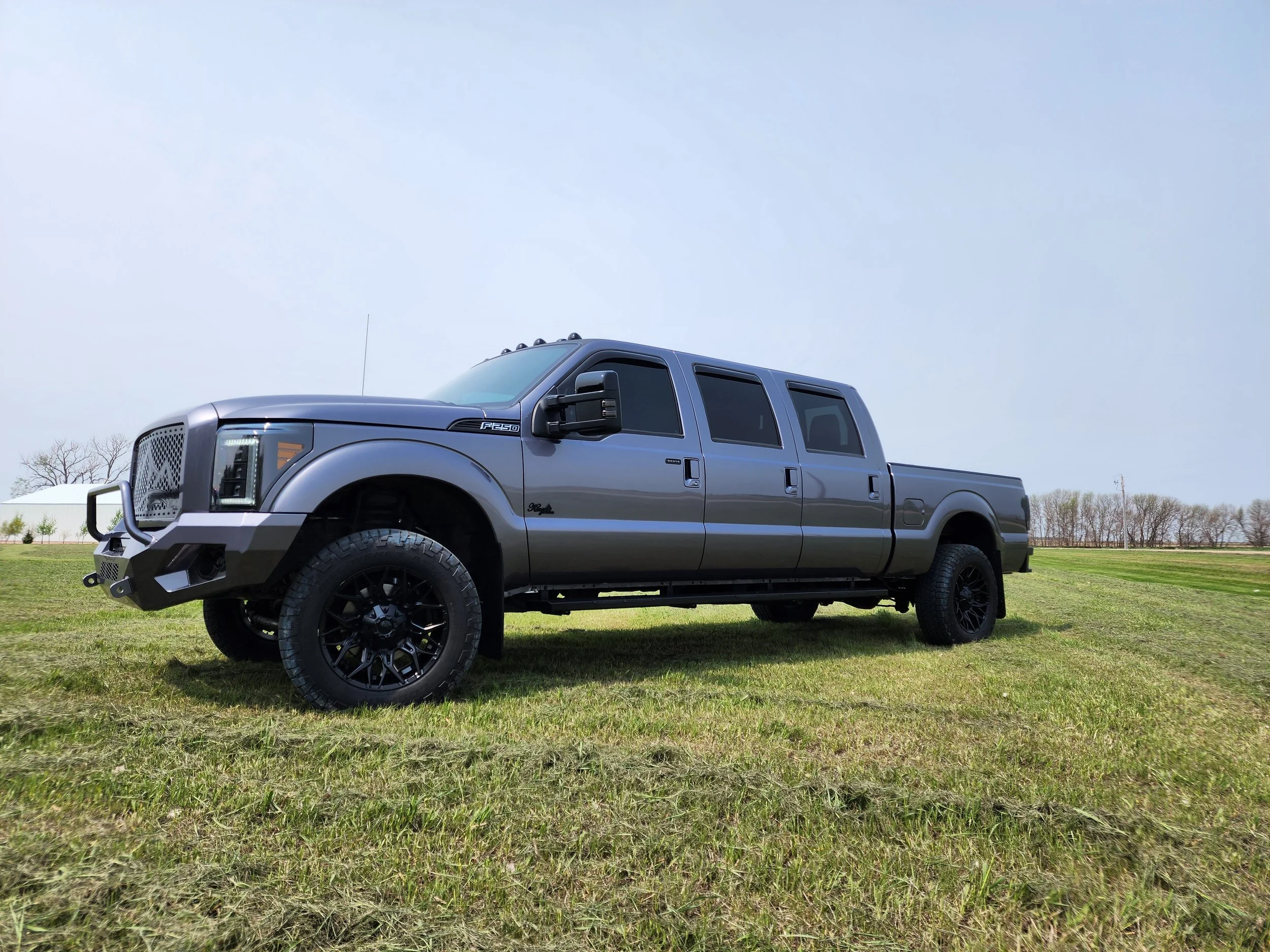 This 2015 F-250 features a striking Frozen Gray charcoal with painted to match custom King Series bumpers. A bedlined roof and inner tailgate for extra protection along with black accents throughout blend perfectly with the interior which showcases a two-tone Graphite wrap with Barracuda Flint in the combo and a Graphite stitch custom Katzkin leather upholstery. The kids will appreciate the addition of dual DVDs with streaming capabilties and individual headphones while Dad enjoys the upgraded speakers and sound system! This truck features a new custom grille insert from our new King Series custom accessory line along with a 56 gallon replacement fuel tank from S & B tanks, RhinoRack Roof Tracks, Vision X LED running board lights, Weathertech Window Deflectors, heavy duty floor liners, and rear HVAC. He’s added all smoked lighting to the exterior and a shop favorite, Jimmi Jammers, for extra security! This one will turn all the heads at the campgrounds this summer! Standard features include: LizardSkin spray-on Ceramic Insulation and Sound Control. Air Lift air helper springs with in-cab controls. Mil-Spec Liner in the box. Bilstein B8 shock absorbers. 2 Interstate Batteries. Factory Ford Puck 5th Wheel Hitch. Dual port USB sockets. Seats 8. 4x4. 6.7L diesel. Warranty included. Top notch conversion with seamless fabrication! Learn more and see our other conversions at www.kingseriespickup.com. Contact us today at 605-550-9002 or at kingseriespickup@gmail.com to inquire! You can also contact us below on the link!