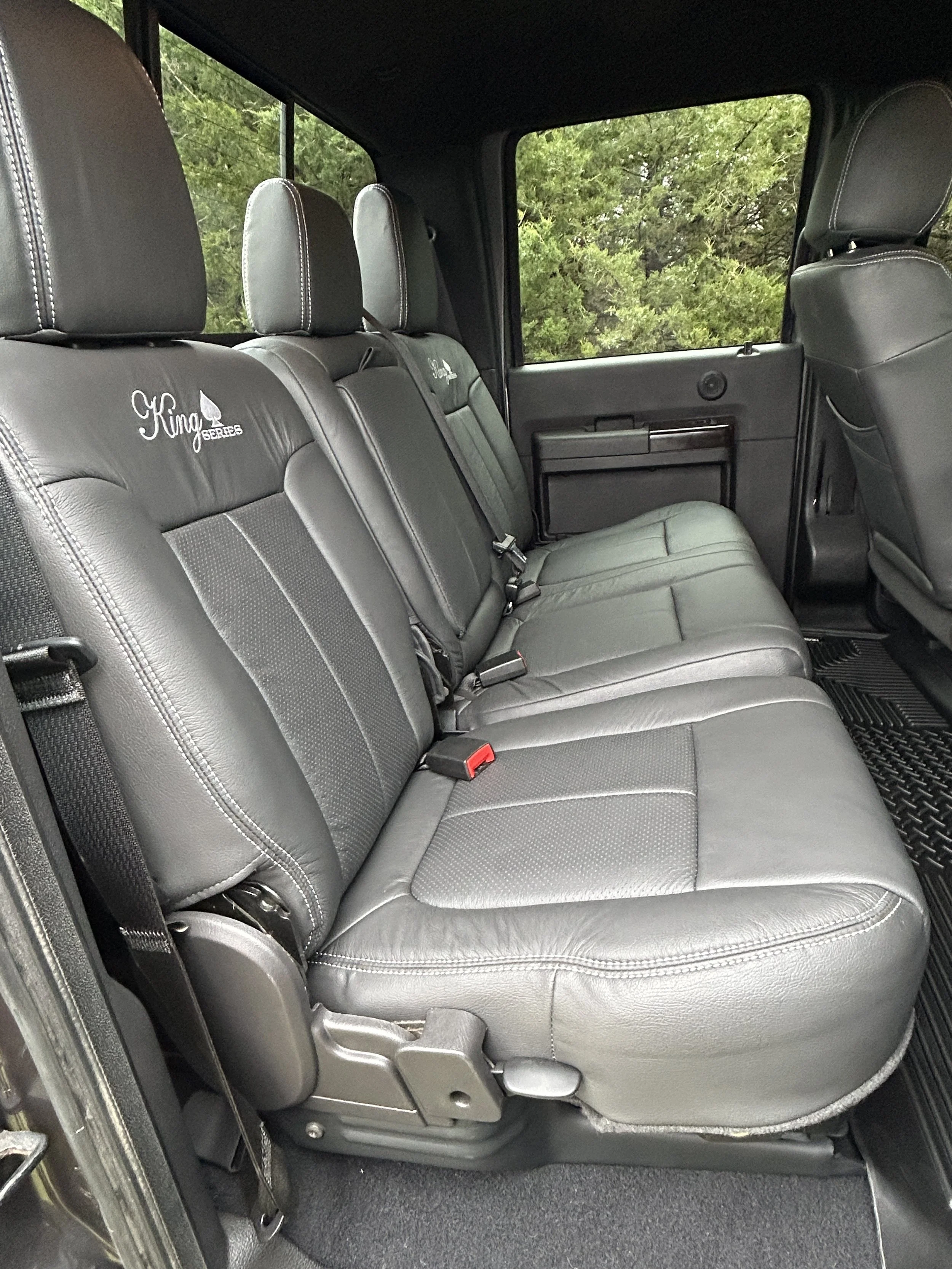A build near and dear to our heart, as this family purchased “Old Black”, the very first 6 door we ever built! While we’re so excited to have “Old Black” back, we’re even happier for them to trade in and upgrade so they can continue making memories together. They chose a classic color - Sterling Gray Metallic along with a Single tone Dark Graphite with a Silver stitch and Silver logo from custom Katzkin leather upholstery. Staying with the classic theme, we kept the factory wheels and bumpers along with chrome rocker panels, but added a little flare with smoked headlights, taillights, and a dual grille light bar. Heated seats throughout the truck will keep everyone extra warm during those midwest winters, along with massaging in the front for Mom & Dad. The addition of a single DVD player will be handy for watching Tom & Jerry on the way to watch Dad bullfight at the rodeos. Other upgrades include: Floor liners. Massaging seats. AirLift Rear Air Ride. Train horn. Jimmi Jammers. LED Floor Lights. 56 gallon S&B fuel tank. 5 gallon air tank with upgraded compressor. Standard features include: LizardSkin spray-on Ceramic Insulation and Sound Control. Bilstein B8 shock absorbers. Mil+Spec Liner in the box. 2 Interstate Batteries. Dual port USB sockets. Seats 9. 4x4. 6.7L diesel. Warranty included. Top notch conversion with seamless fabrication! Learn more and see our other conversions at www.kingseriespickup.com. Contact us today at 605-550-9002 or at kingseriespickup@gmail.com to inquire! You can also contact us below on the link!