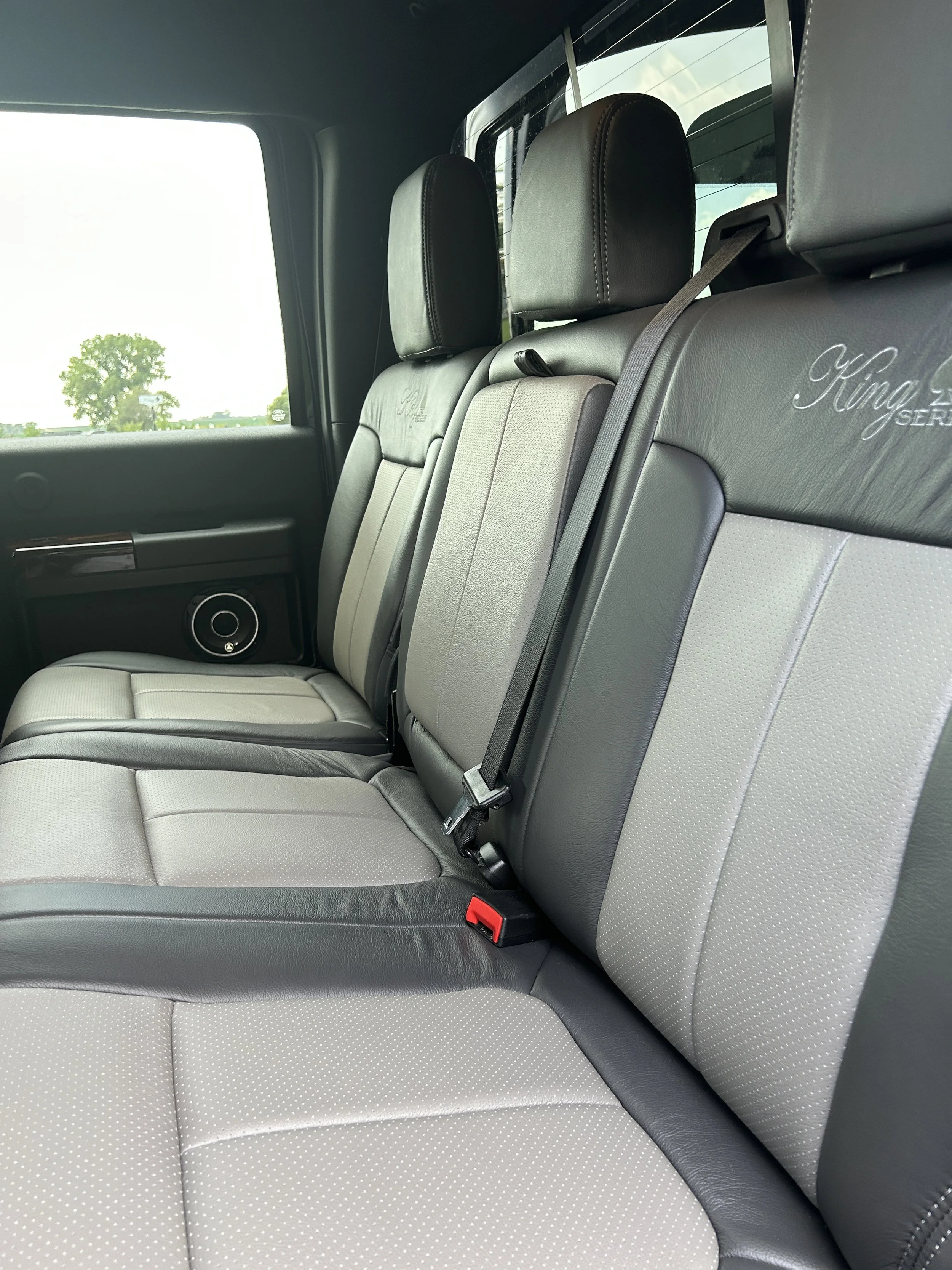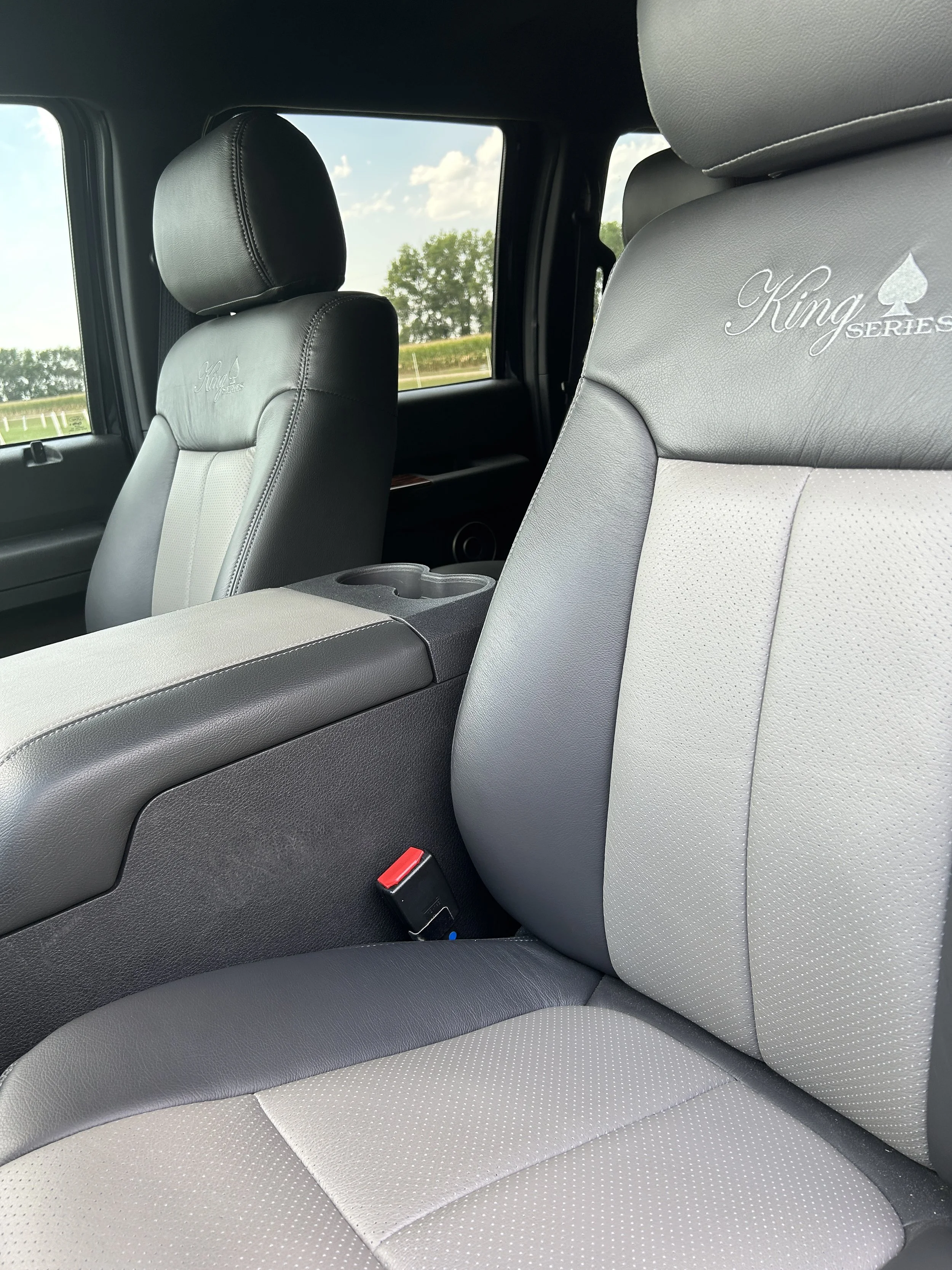 This client likes his brother in law’s King Series 6 door so much, he decided to get one himself! This 2016 F-350 is bringing a new look with an Anti-Matter Blue exterior and painted to match Leer topper which is complimented nicely by a bedlined roof and inner tailgate for extra protection. A brand new Fuel Wheel called the “Quake” in a Platinum finish is the perfect contrast to the dark blue and ties the interior to the exterior which features a two-tone Graphite wrap with Stone in the combo and a Stone stitch custom Katzkin leather upholstery. The kids will appreciate the addition of dual DVDs with streaming capabilities and individual headphones while Dad enjoys the upgraded speakers, radio screen, and sound system! This truck is set up perfectly for camping as he’s chosen a 3000W Inverter, 5th Wheel Camera, Air Lift Air Ride, Curt Q20 5th Wheel Hitch along with a 70 gallon replacement fuel tank from S & B tanks, and rear HVAC. Other upgrades include: Floor liners. Massaging seats. Custom Hydro-Dipped interior. Standard features include: LizardSkin spray-on Ceramic Insulation and Sound Control. Bilstein B8 shock absorbers. Mil+Spec Liner in the box. 2 Interstate Batteries. Dual port USB-C sockets. Seats 8. 4x4. 6.7L diesel. Warranty included. Top notch conversion with seamless fabrication! Learn more and see our other conversions at www.kingseriespickup.com. Contact us today at 605-550-9002 or at kingseriespickup@gmail.com to inquire! You can also contact us below on the link!