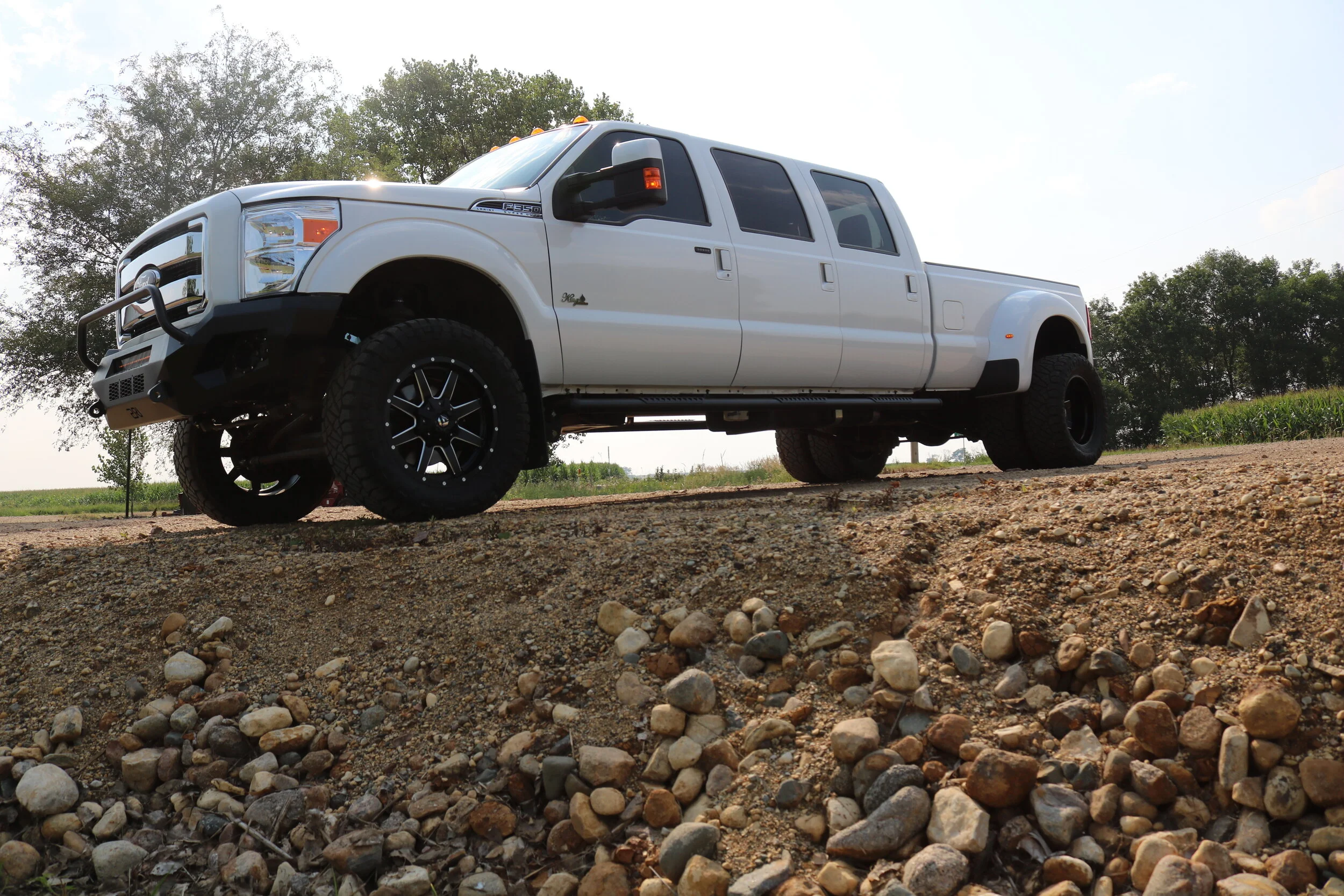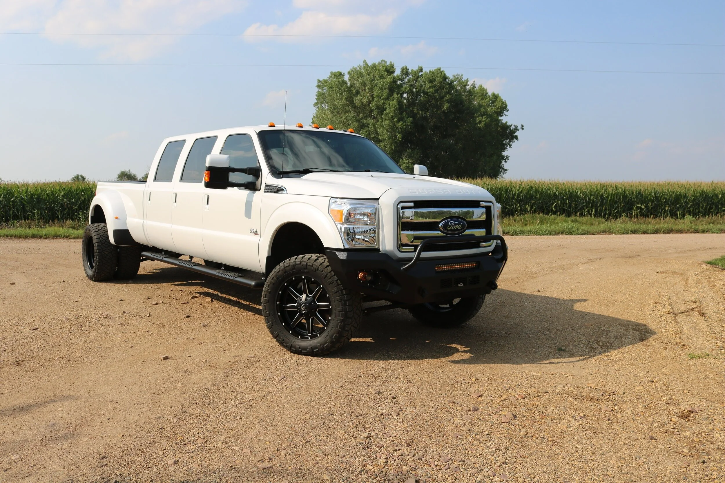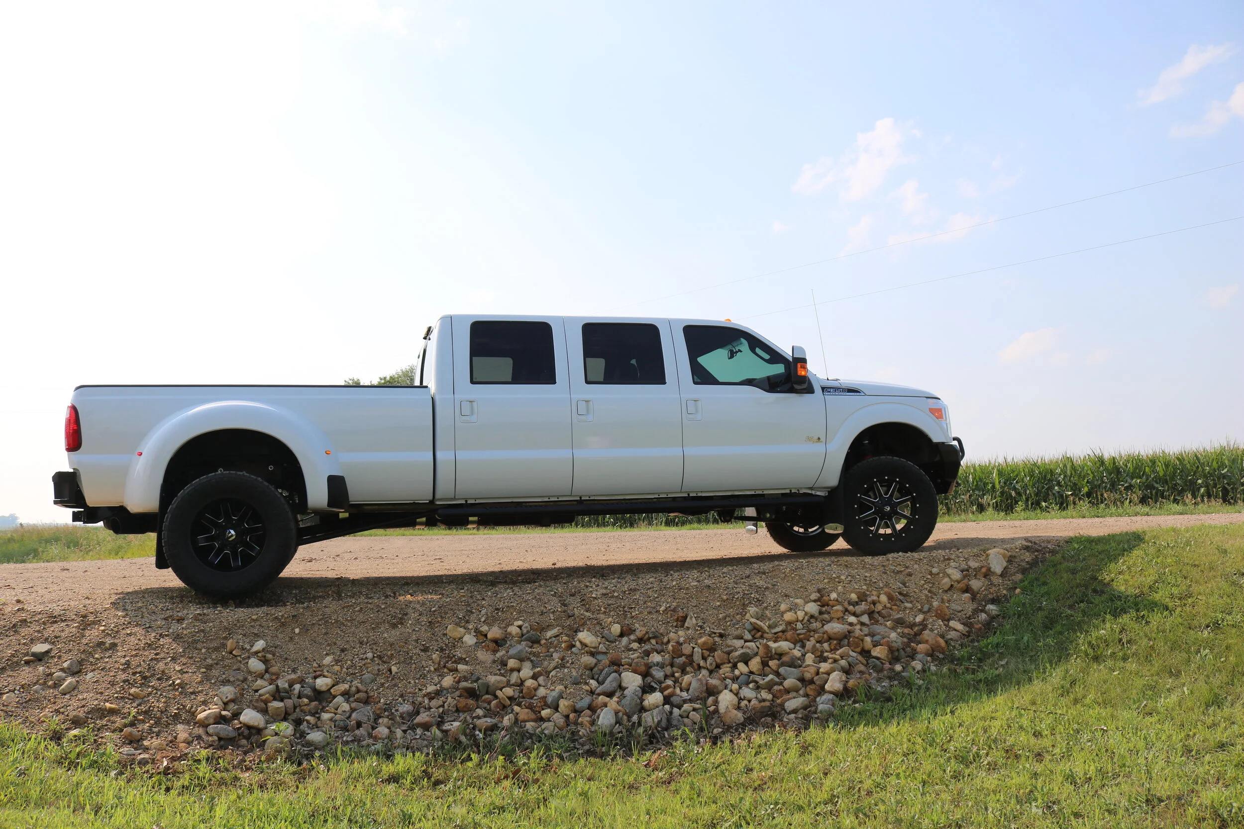 This Blizzard of Oz Pearl White exterior paired with a Black and Barracuda Charcoal two-tone combo interior custom Katzkin leather upholstery makes for a clean look. Newly featured in this truck are custom hydro-dipped carbon fiber accents. With a 145-gallon fuel capacity, this truck can nearly travel from California to New York before a fill-up with the Titan 65 gallon fuel tank, Titan 30 gallon innovative spare tire auxillary fuel system, and the Titan Travel Trekker. Heated and Cooled seats and dual flip down roof DVD systems make for a fun and comfortable ride. Other options and upgrades include: LizardSkin spray-on Ceramic Insulation and Sound Control. Luverne Mud Flaps. Luverne Running Boards. Dual port USB sockets. Camera Source 3rd Brake Light Camera. Firestone Ride-Rite air helper springs with in-cab controls and additional Firestone Coil-Rite front air springs. Bilstein B8 shock absorbers. Fuel Maverick wheels. Nitto Ridge Grappler tires. Set of 6 Door Striker for silent door closures. 2 Interstate Batteries. Husky Floorliners. Seats 7. 4x4. 6.7L diesel. 8’ box. Top notch conversion with seamless fabrication! Learn more and see our other conversions at www.kingseriespickup.com. Contact us today at 605-550-9002 or at kingseriespickup@gmail.com to inquire! You can also contact us below on the link!
