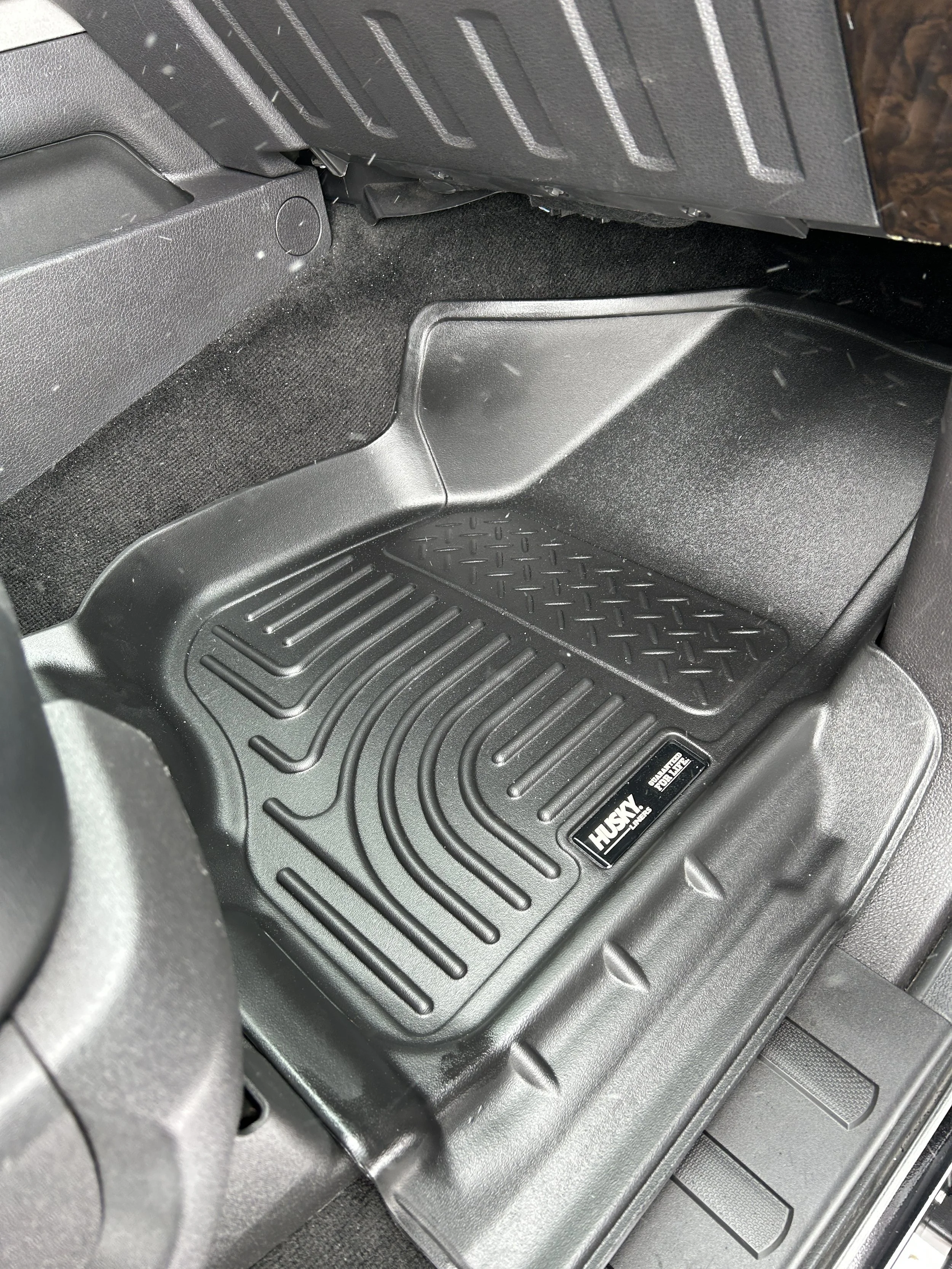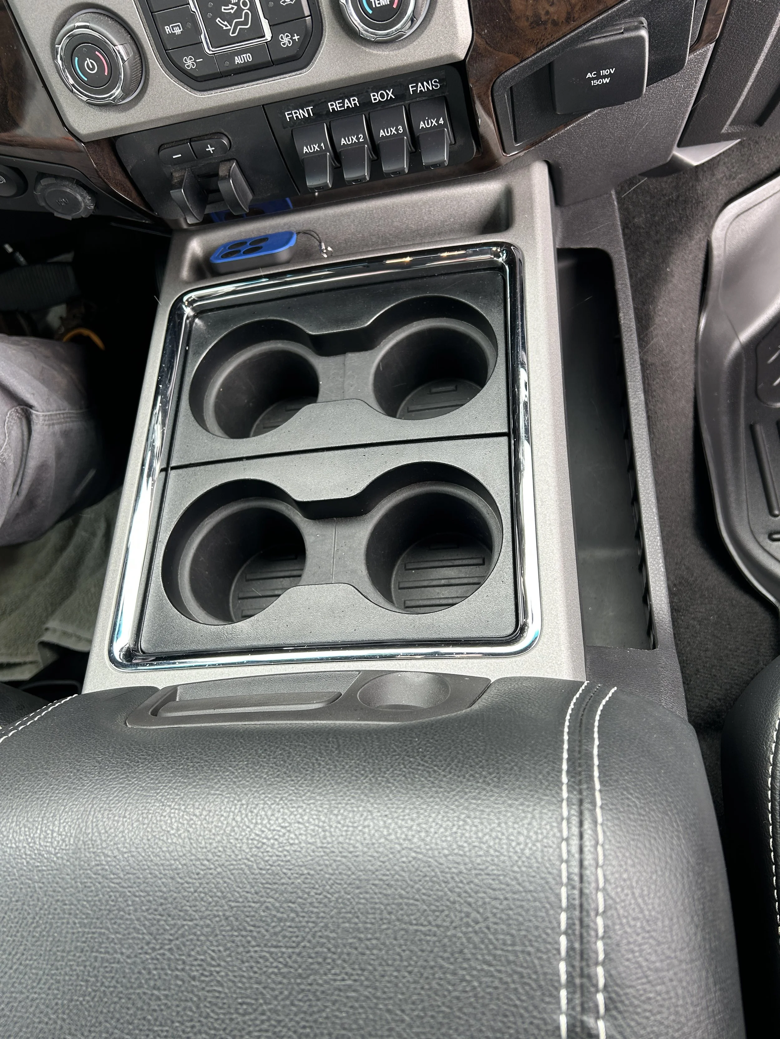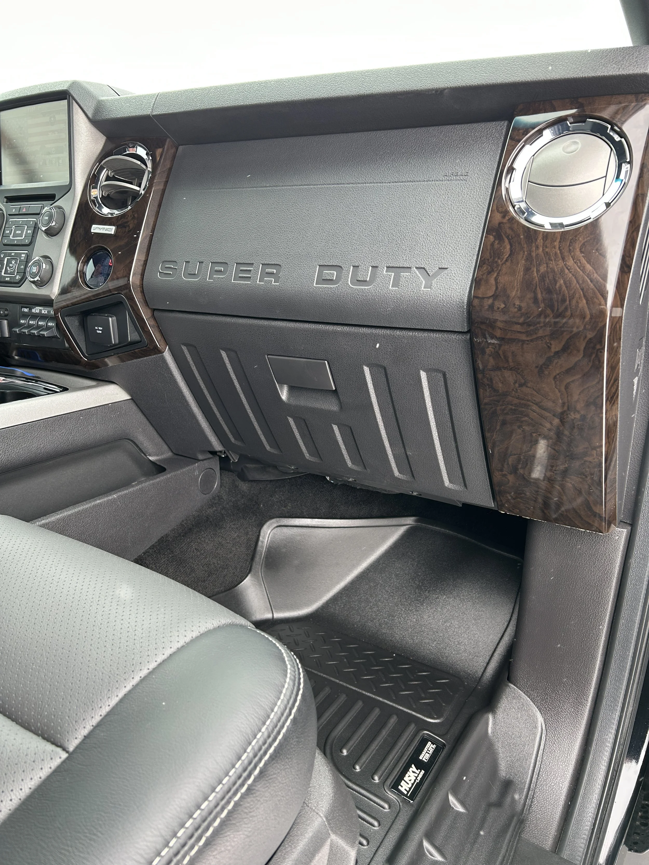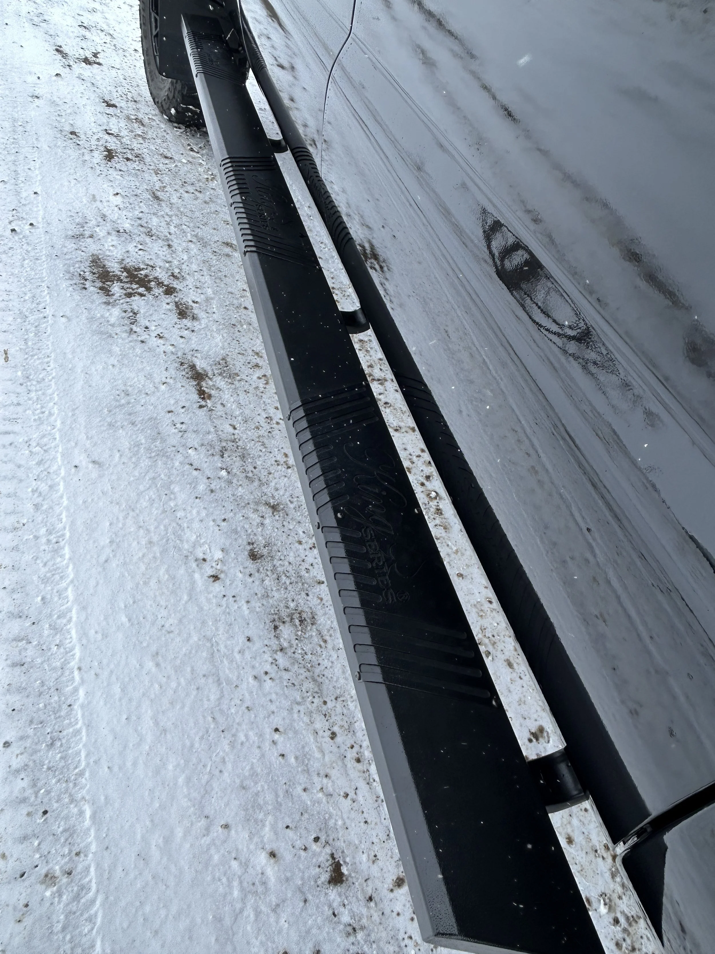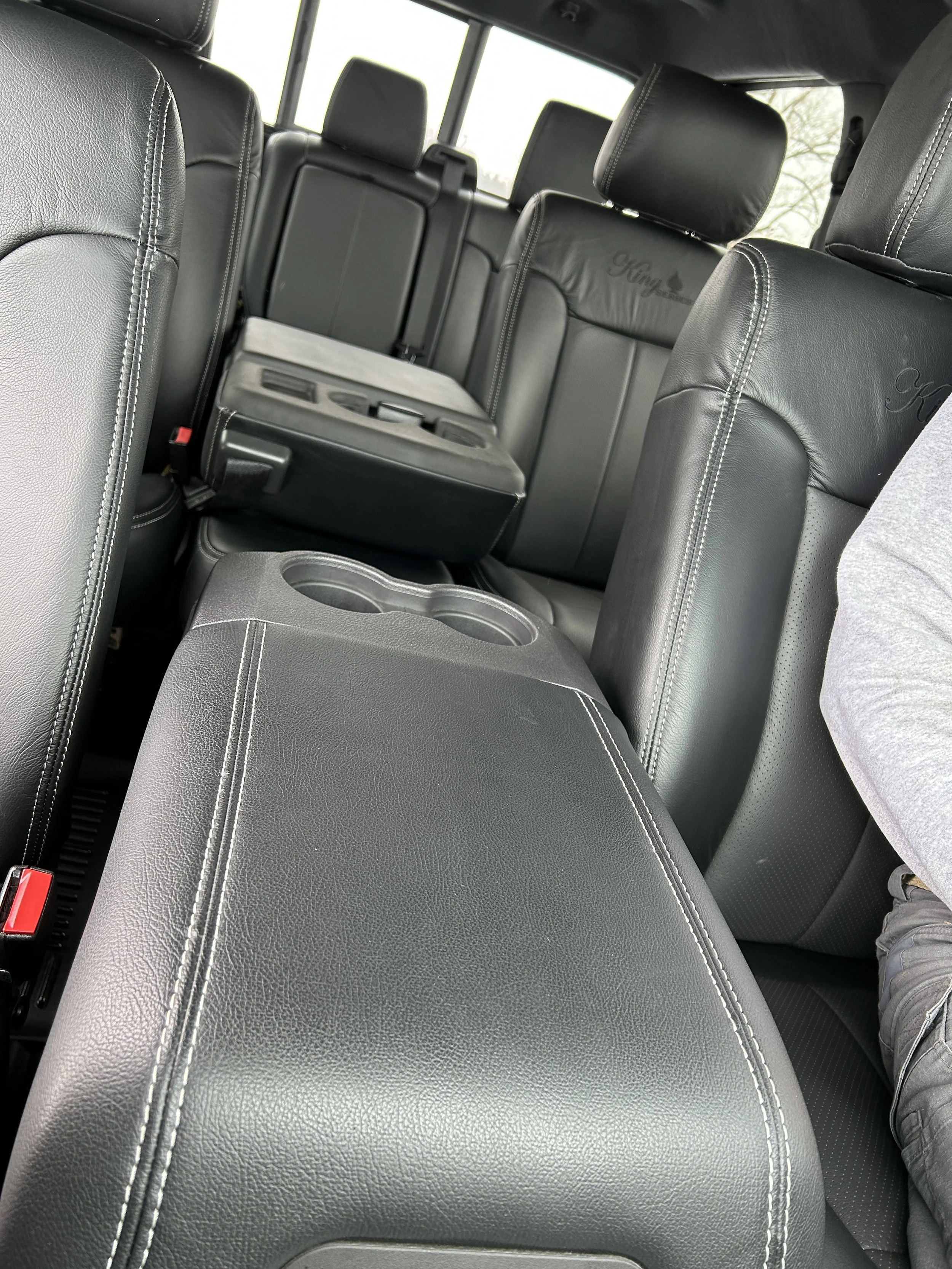 A photoshoot on a snowy day seems fitting for this truck, which is headed back home up north! Oil industry to kids’ hockey games, this truck is all-purpose - equipped with an additional auxiliary heating system and heated seats throughout, this truck will stay warm in the harsh winters. A Shadow Black, Platinum trim level truck, the client changed from chrome/brushed accents to a blacked out look on the exterior, which continues to the interior by showcasing a Black wrap with Dark Graphite combo and a Frost stitch custom Katzkin leather upholstery. This customer provided truck came to us with a 6” lift along with custom wheels and 37” tires, so the added length from the conversion makes the stance even more profound! This truck features a custom Spade grille insert from our new King Series custom accessory line along with a 56 gallon replacement fuel tank from S & B tanks, a Kleinn Train Horn, Vision X LED bed lighting, Vision X LED running board lights, and interior floor lighting. He’s added all smoked lighting to the exterior and a shop favorite, Jimmi Jammers, for extra security! Standard features include: LizardSkin spray-on Ceramic Insulation and Sound Control. Dual port USB sockets. Mil-Spec Liner in the box. Air Lift air helper springs with in-cab controls. Bilstein B8 shock absorbers. 2 Interstate Batteries. Factory Ford Puck 5th Wheel Hitch. Seats 8. 4x4. 6.7L diesel. Warranty included. Top notch conversion with seamless fabrication! Learn more and see our other conversions at www.kingseriespickup.com. Contact us today at 605-550-9002 or at kingseriespickup@gmail.com to inquire! You can also contact us below on the link!