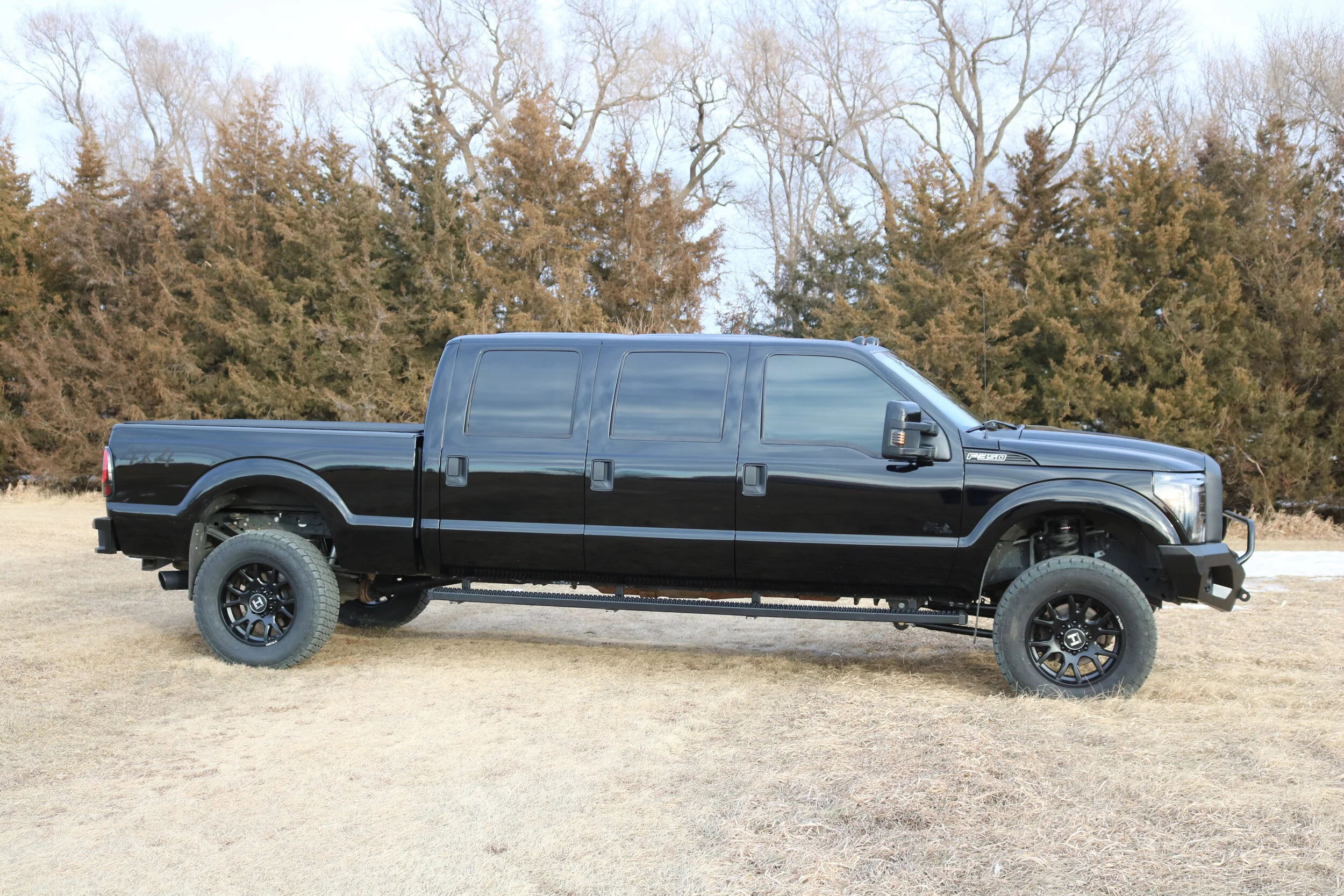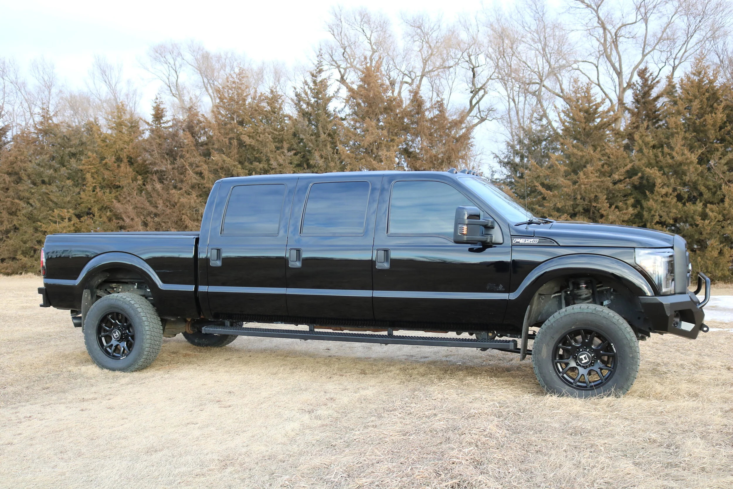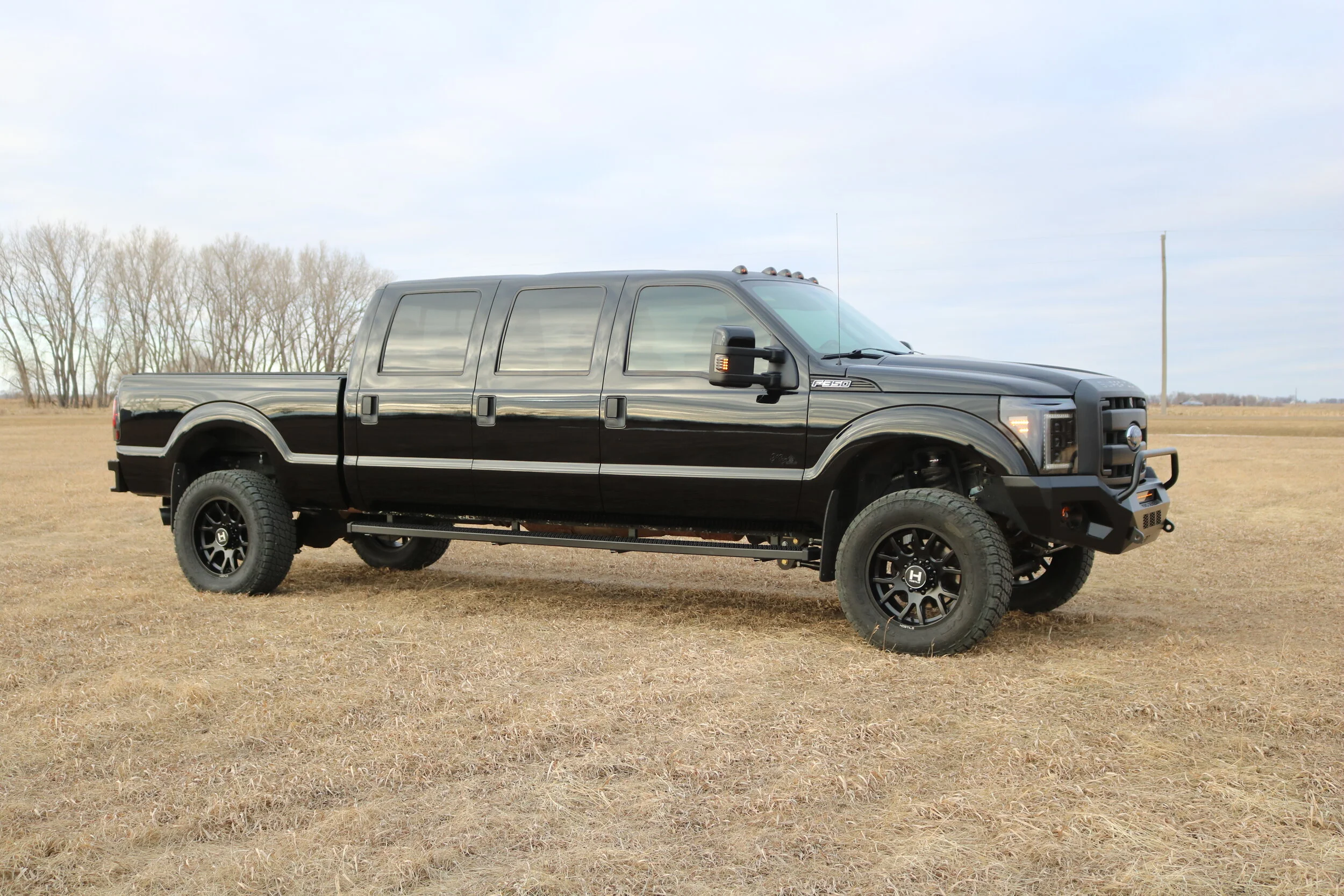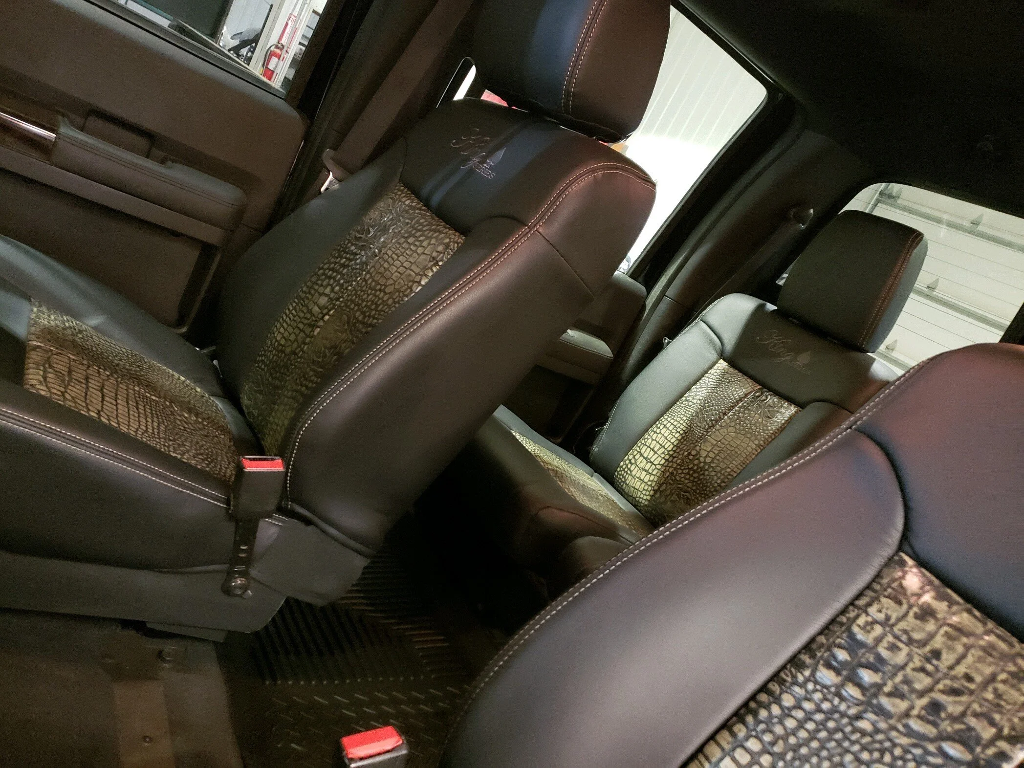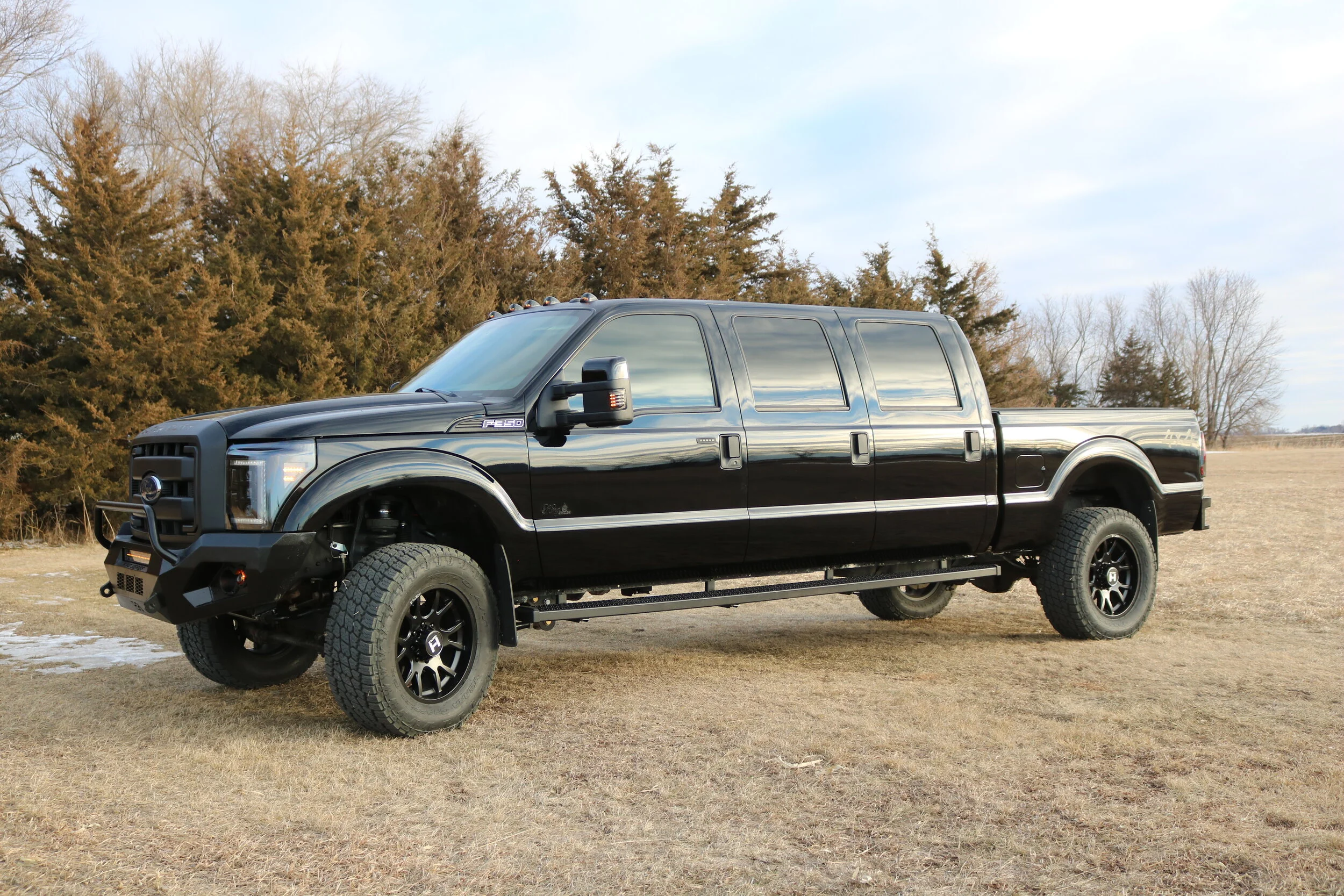 This Blizzard of Oz Pearl White exterior paired with a Black and Barracuda Charcoal two-tone combo interior custom Katzkin leather upholstery makes for a clean look. Newly featured in this truck are custom hydro-dipped carbon fiber accents. With a 145-gallon fuel capacity, this truck can nearly travel from California to New York before a fill-up with the Titan 65 gallon fuel tank, Titan 30 gallon innovative spare tire auxillary fuel system, and the Titan Travel Trekker. Heated and Cooled seats and dual flip down roof DVD systems make for a fun and comfortable ride. Other options and upgrades include: LizardSkin spray-on Ceramic Insulation and Sound Control. Luverne Mud Flaps. Luverne Running Boards. Dual port USB sockets. Camera Source 3rd Brake Light Camera. Firestone Ride-Rite air helper springs with in-cab controls and additional Firestone Coil-Rite front air springs. Bilstein B8 shock absorbers. Fuel Maverick wheels. Nitto Ridge Grappler tires. Set of 6 Door Striker for silent door closures. 2 Interstate Batteries. Husky Floorliners. Seats 7. 4x4. 6.7L diesel. 8’ box. Top notch conversion with seamless fabrication! Learn more and see our other conversions at www.kingseriespickup.com. Contact us today at 605-550-9002 or at kingseriespickup@gmail.com to inquire! You can also contact us below on the link!